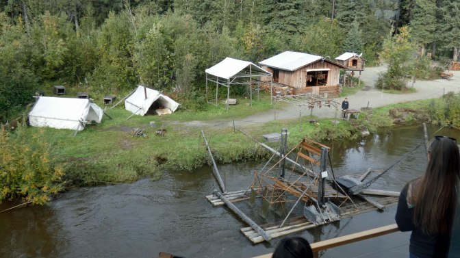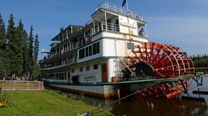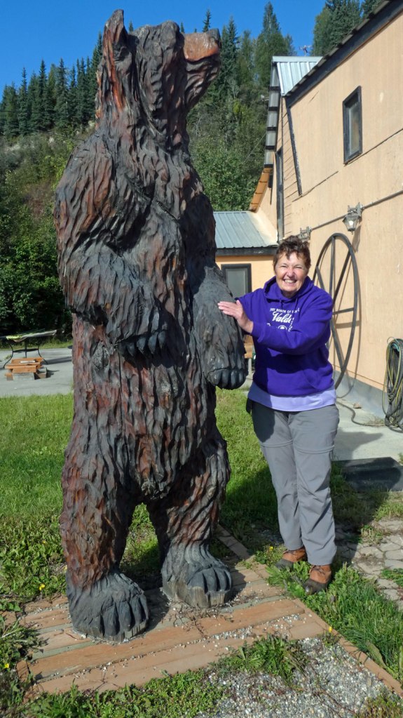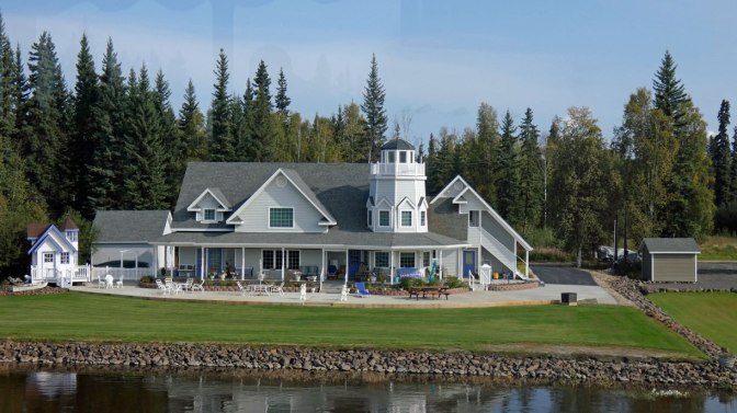 We are in a very small village of about 240 people, but they have a micro brewery and I could live here. In Fairbanks we went on the Discovery III steer wheel boat to a fish camp. They had about 20 buildings including a post office, fish smoke house, and many more. The wild fire has closed the Parks highway and the train for several days. They are not getting rain to help with the fire. Tomorrow we are going to Denali for three days then we need to go through the fire area of the highway. People are waiting 8 hours in 20 mile long traffic jam to cross the area with a pilot vehicle. The only other route would take two days and 650 miles to bypass the 20 miles of fire. We are hoping for the best. They are evacuating locals from the fire area. This is a very serious problem. The Princess Cruise vacations that include the train to Denali and Fairbanks are being cancelled for a lot of days. Most people in Fairbanks and Anchorage are taking the long route through Glennallen which takes 2.5 hours and 150 more miles to avoid the Parks highway fire problems. Helen has managed to find three quilt stores on our Alaska journey. Some items are coming home with us. At this point it appears we will have to leave some things we brought from home to accommodate the new treasures.
